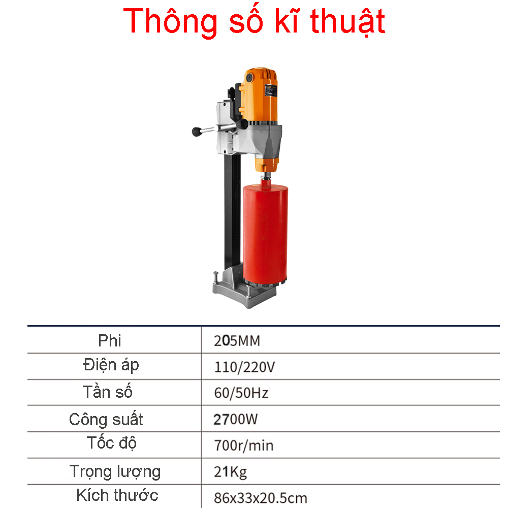 Máy Khoan Rút Lõi DERA Phi 205 - Khoan Rút Lõi Bê Tông Cầm Tay Chuyên Dùng Cho Các Vật Liệu Cứng Như Gạch ,Đá , Bê Tông Ứng Dụng Trong Ngành Xây Dựng – Hàng Chính Hãng