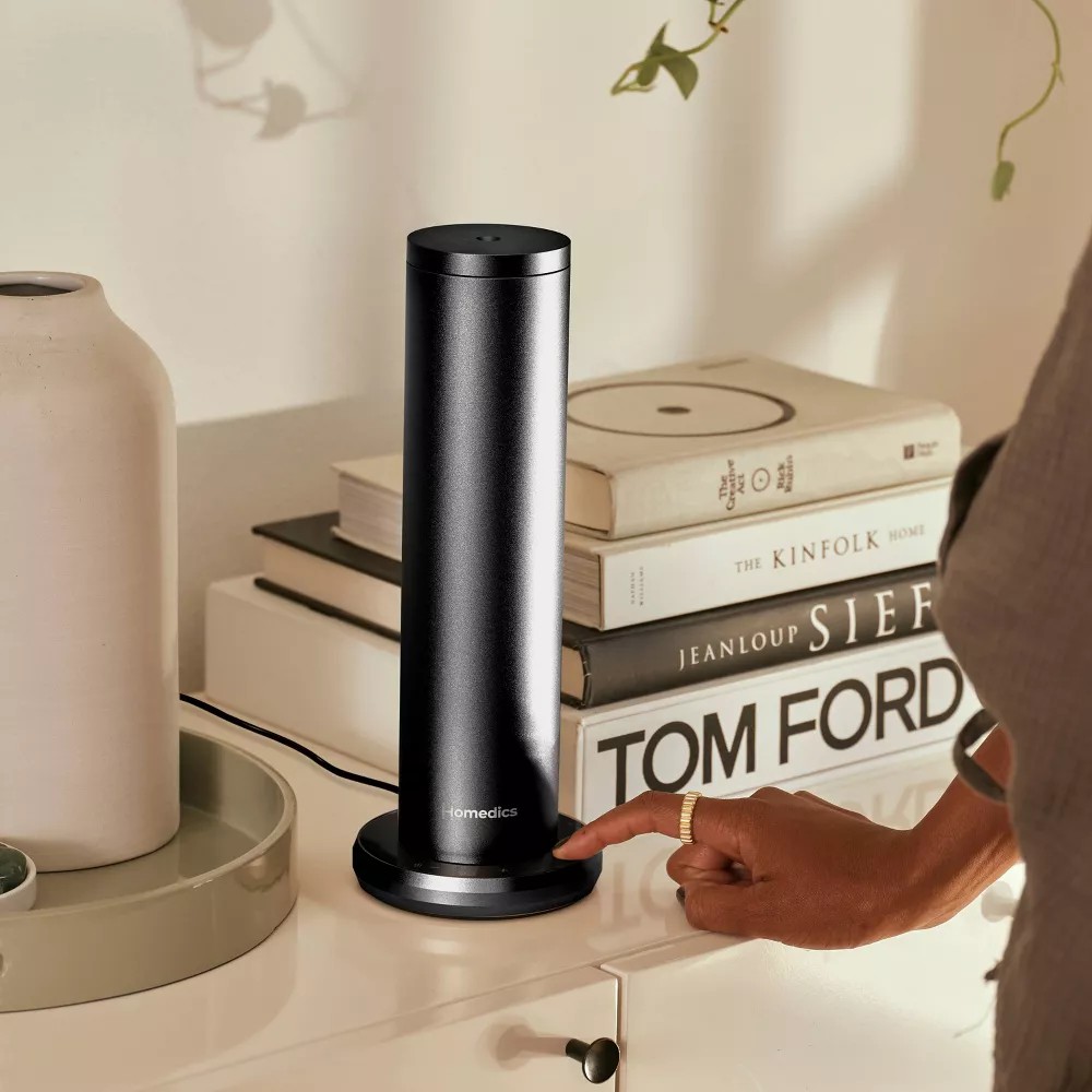 Tiếp thêm sinh lực cho không khí ở nhà của bạn với Máy khuếch tán hương thơm gia đình không cần nước Homedics SereneScent. Bộ khuếch tán kiểu dáng đẹp này sử dụng các giọt siêu nhỏ nhẹ hơn không khí để phân tán hương thơm quyến rũ khắp không gian của bạn – không cần nước!