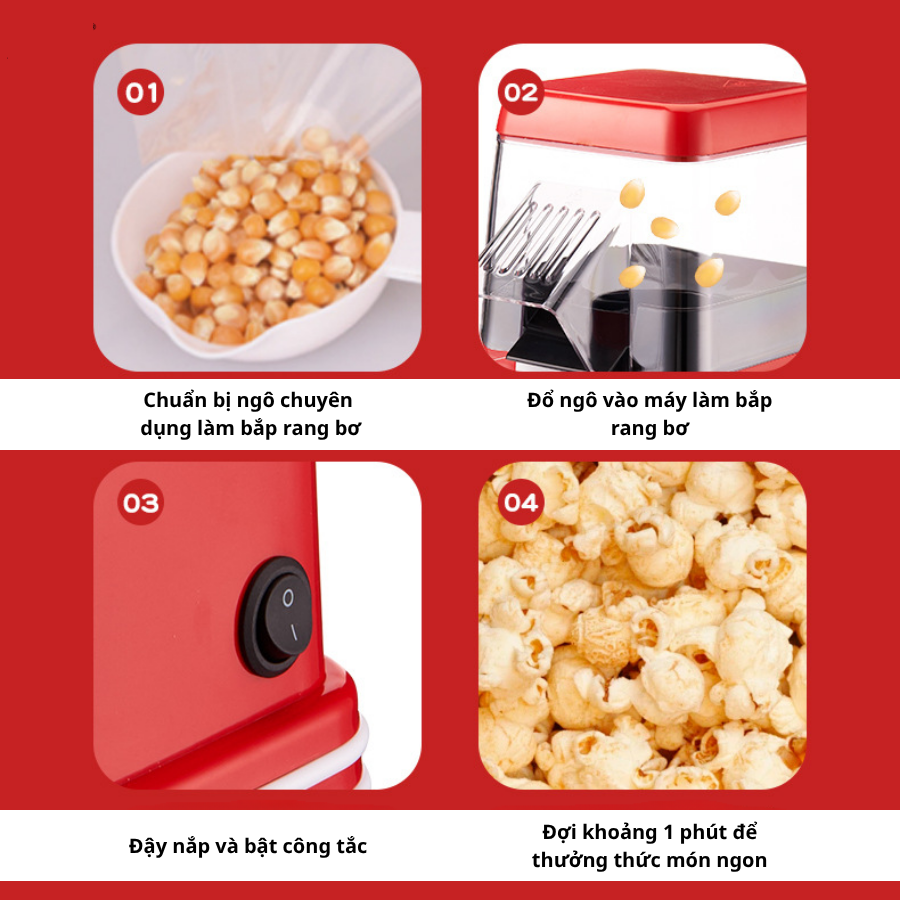• Mang đến những bắp bỏng ngô thơm ngon, giòn rụm để thưởng thức cùng gia đình và bạn bè trong các buổi xem phim, trò chuyện.