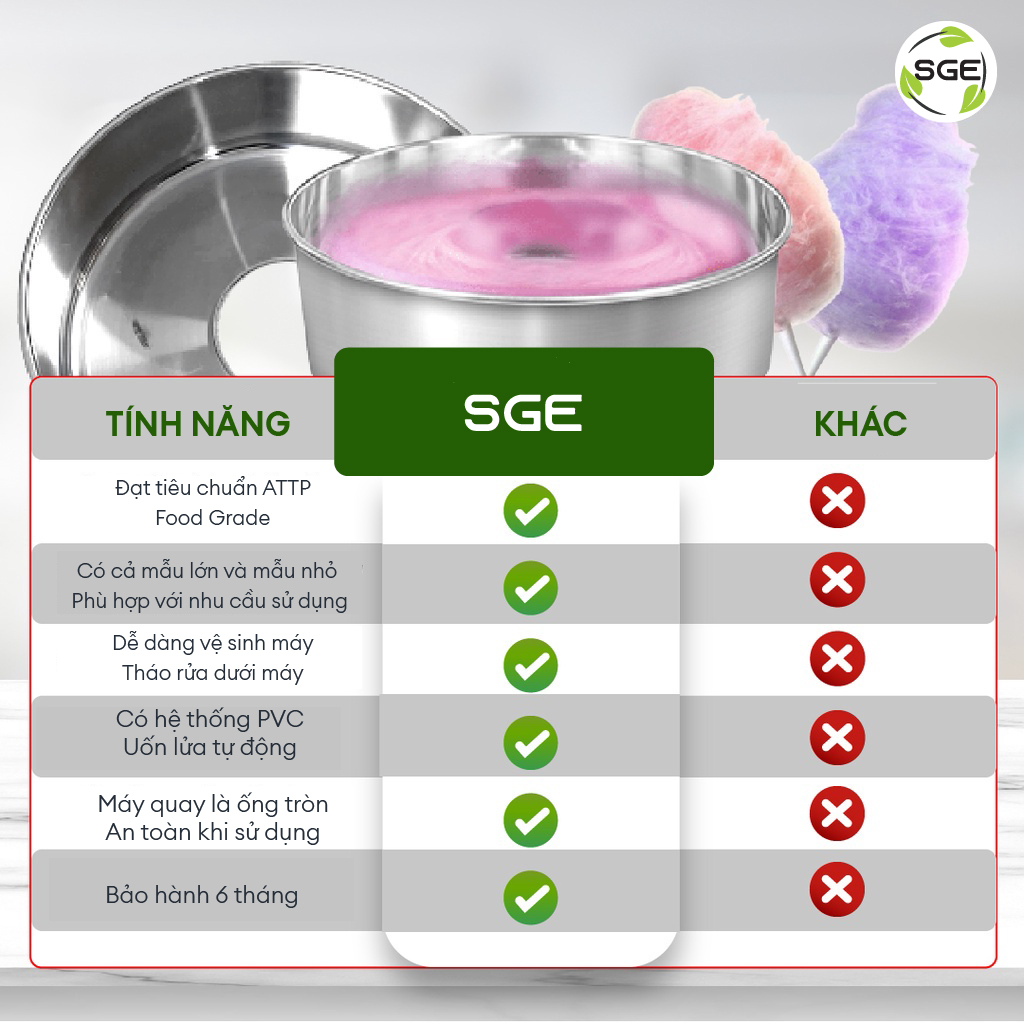 Máy kẹo bông Có thể làm kẹo bông mềm, sản xuất nhanh. Thích hợp để làm kẹo bông để bán bởi vì nó có năng lực sản xuất cao dùng nguyên liệu ít và sử dụng bền lâu. Máy cũng có thể sử dụng cho các event, sự kiện hay tổ chức hoạt động cho trẻ nhỏ do máy sử dụng được lâu dài.
