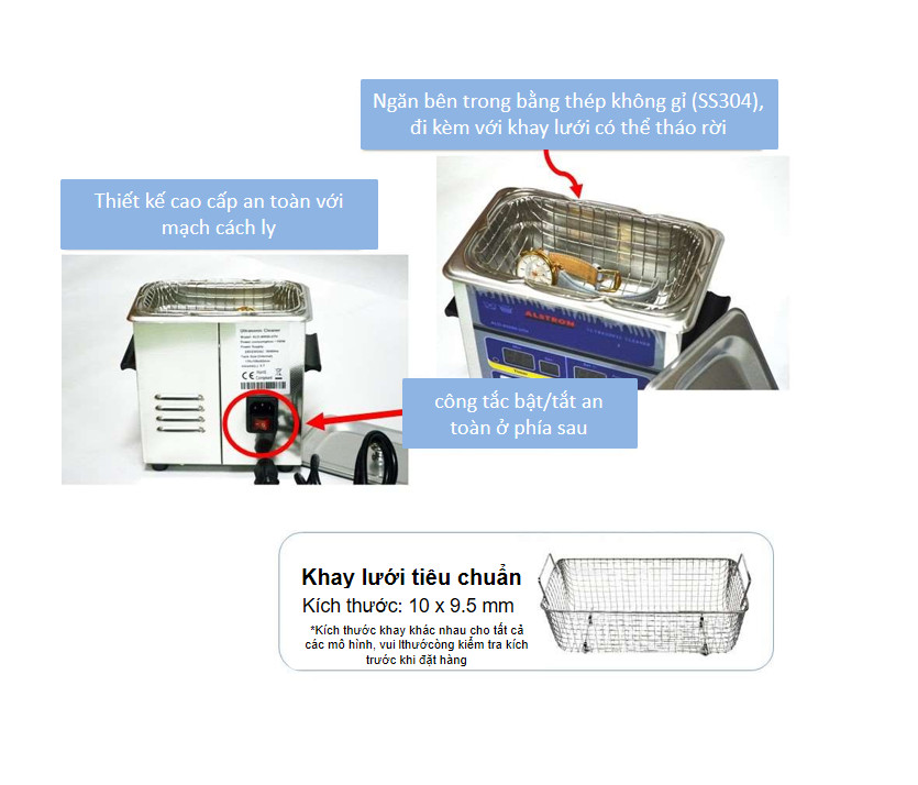 ✨Máy làm sạch bằng sóng siêu âm - Máy rửa có nhiệt độ - 100W 2 lít (ALD-400100-20H) - Singapore