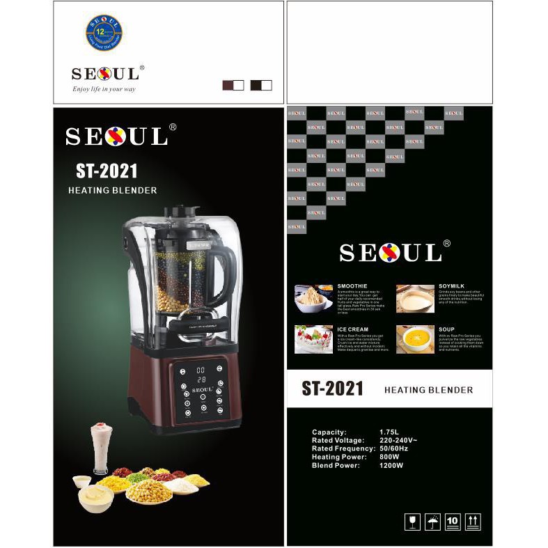 Công suất xay: 1200W Công suất nấu: 800W Thông số nổi bật (nếu có) Thân cối bằng thủy tinh chịu lực, an toàn sức khỏe. Làm sữa hạt chỉ trong 20 phút MÔ TẢ SẢN PHẨM Máy làm sữa hạt Seoul ST-2021 sở hữu thiết kế hiện đại, tông màu hạt dẻ kết hợp bắt mắt, phù hợp sử dụng trong mọi không gian bếp gia đình. Máy có kích thước gọn nhẹ chỉ bằng một chiếc máy xay sinh tố thông thường nên không chiếm quá nhiều diện tích kệ bếp của bạn. Hơn nữa, với nhiều tính năng hiện đại, đây là sản phẩm lý tưởng giúp thay thế chiếc máy xay sinh tố cơ bản của gia đình bạn. Công suất lớn và mạnh mẽ xử lý mọi thứ nghiền nát mọi thứ. Làm sữa hạt chỉ trong 20 phút Máy làm sữa hạt Seoul ST-2021 làm sữa hạt chỉ trong 20 phút chỉ với vài thao tác đơn giản.