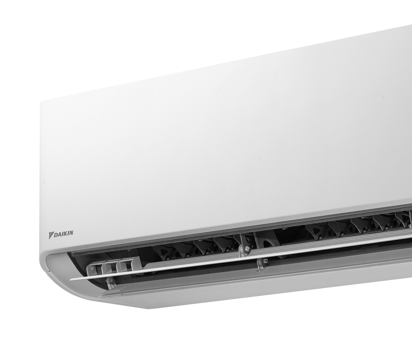 - Giảm khả năng lây nhiễm virus xuống dưới 1:1000. Chức năng chống ẩm mốc Chức năng chống ẩm mốc kết hợp với tính năng STREAMER có cơ chế hoạt động như sau: Khi ngưng chức năng làm lạnh hoặc khử ẩm thì điều hòa sẽ tự động hoạt động ở chế độ chỉ chạy quạt trong 1 giờ để làm khô bên trong dàn lạnh nhằm làm giảm sự phát sinh nấm mốc và các mùi khó chịu, đem lại luồng không khí mát mẻ, ngoài ra còn giúp duy trì hiệu suất và tuổi thọ của dàn lạnh. Ngoài ra luồng điện Streamer phóng ra và làm khô bên trong dàn lạnh, dàn tản nhiệt và đường thổi gió và vô hiệu hóa các chất độc hại như nấm mốc và các chất gây dị ứng và virus. Điều khiển từ xa bằng điện thoại thông minh dễ dàng Chỉ cần cài đặt ứng dụng điều khiển di động của Daikin trên điện thoại di động bạn có thể quản lý và điều khiển điều hòa ở bất cứ nơi đâu, giúp duy trì không gian thoải mái tiện nghi cho ngôi nhà của bạn đồng thời tiết kiệm điện năng. Thông qua ứng dụng này người dùng có thể điều khiển những chức năng như bật/tắt, chế độ hoạt động và cài đặt nhiệt độ cũng như những tính năng tiên tiến hơn như lập lịch hàng tuần hoặc theo dõi hệ thống điều hòa đảm bảo máy hoạt động như bạn mong muốn. Dàn nóng siêu bền Điều hòa Daikin sử dụng dàn tản nhiệt Microchannel, cánh trao đổi nhiệt của dàn nóng được sơn phủ 2 lớp tĩnh điện: Lớp nhựa acrylic và lớp chống thấm nước để tăng khả năng chống mưa axit và sự ăn mòn của muối. Bảo vệ điện áp cao - thấp Điều hòa có một mạch điện tử được lắp trong dàn nóng. Khi điện áp bị sụt bất thường thì mạch này sẽ bảo vệ động cơ quạt và máy nén mà người sử dụng không cần phải lắp thêm bộ ổn áp điện. Cụ thể trong khoảng điện áp từ 150V - 264V thì máy lạnh sẽ hoạt động bình thường. Điện áp trên 264V - 440V thì máy lạnh sẽ tự dừng lại, ngắt điện để không làm hư hỏng máy.