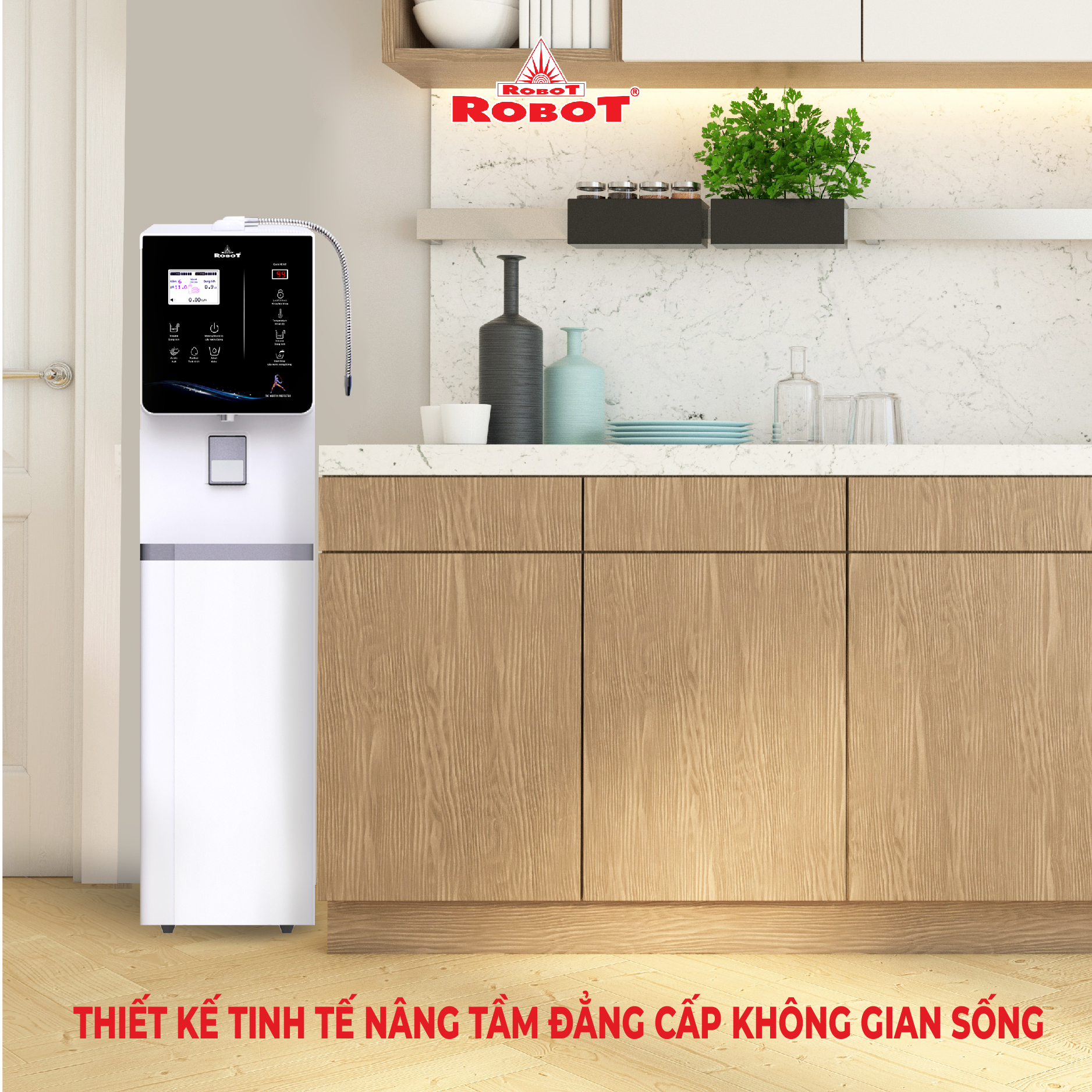 Máy lọc nước iON kiềm ROBOT ionKing, tích hợp Nóng, Lạnh, Đạt Chứng nhận Thiết bị Y Tế Châu Âu