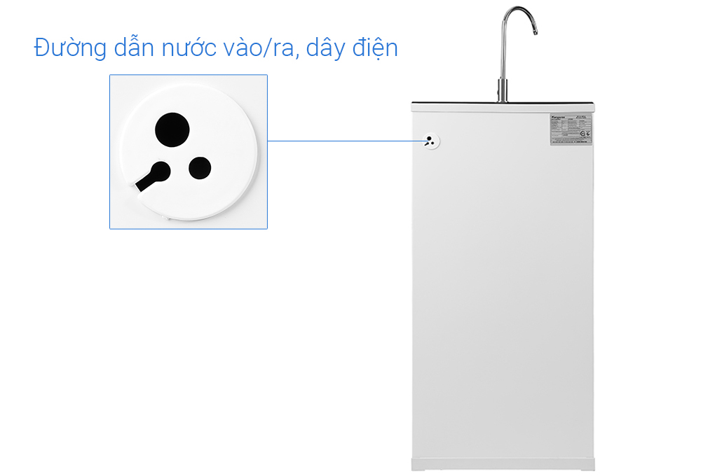• Tiện ích: Lọc được nước nhiễm mặn, nước lợ Tạo nước kiềm (Alkaline) trung hòa axit cho cơ thể Chế độ cút nối nhanh dễ dàng thay lõi Ngừng hoạt động khi áp lực nước thấp Tự động xả nước thải Trung hòa độ pH ổn định độ ngọt cho nước Ngừng hoạt động khi nước đầy bình Thông tin lắp đặt