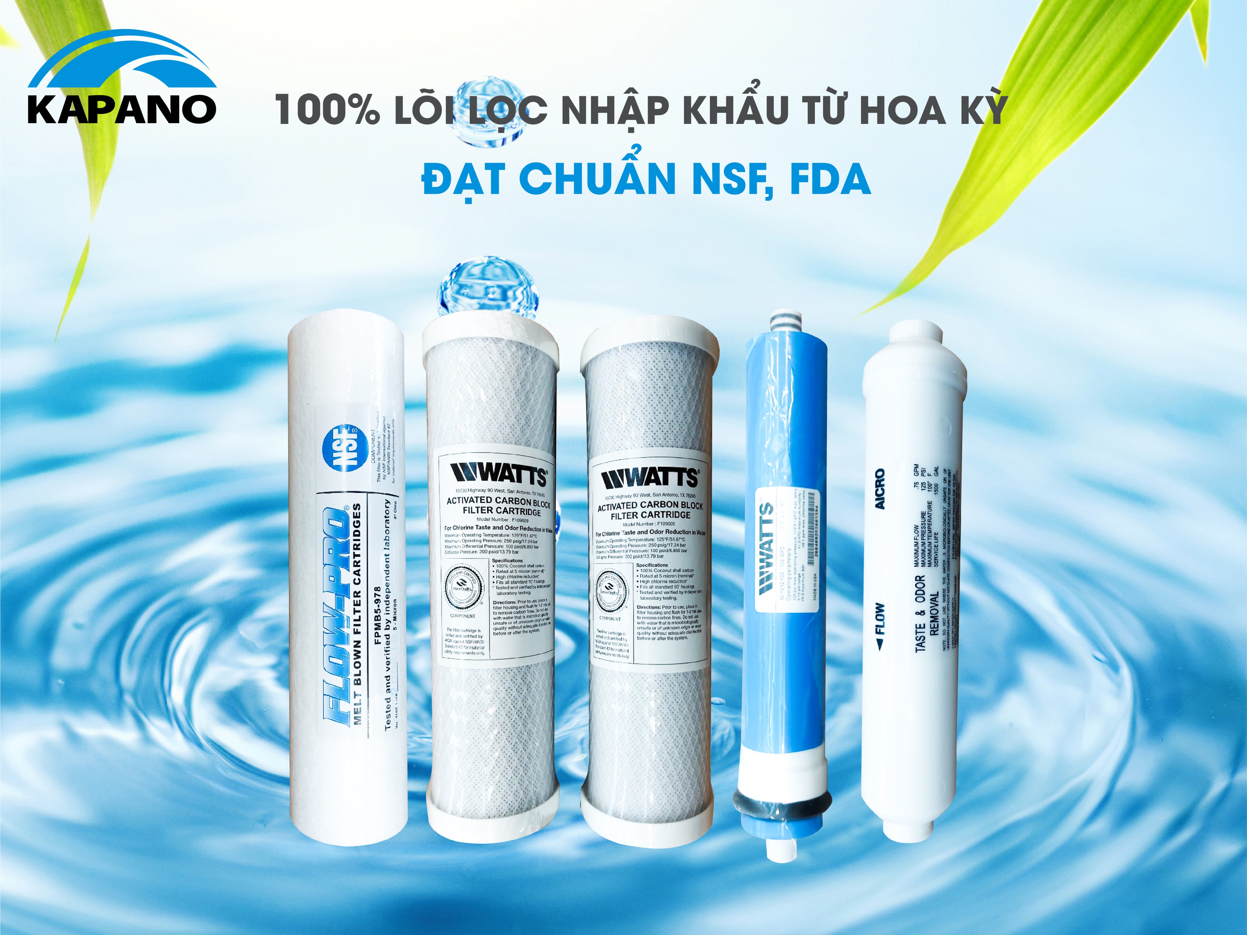 100% lõi lọc nhập khẩu từ Hoa Kỳ, đạt tiêu chuẩn NSF FDA.