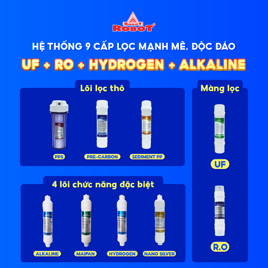 • Cùng các lõi lọc chức năng bù khoáng đặc biệt, cung cấp khoáng chất cần thiết, bổ dưỡng vừa đảm bảo an toàn & vừa tốt cho sức khỏe.
