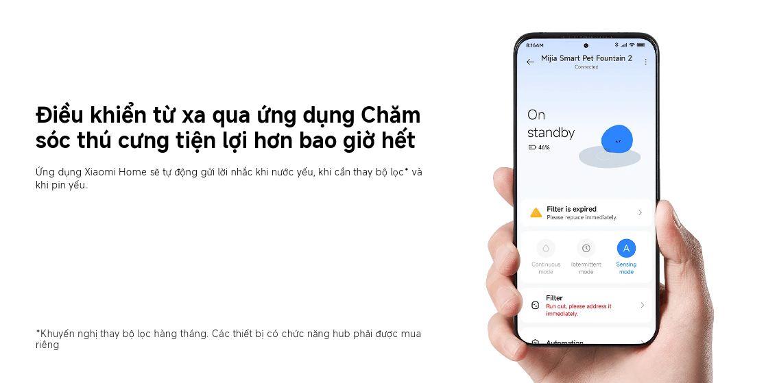 Dung tích lớn 3L Nạp lại một lần dùng trong 15 ngày Cung cấp đủ nước uống cho một con mèo trưởng thành trong 15 ngày hoặc một tuần cho những hộ gia đình nuôi nhiều mèo*, đảm bảo bạn an tâm khi vắng nhà trong thời gian ngắn. Thiết kế thông minh Dễ dàng tháo rời để vệ sinh thuận tiện Tháo rời trong vài bước đơn giản để vệ sinh hàng tuần dễ dàng. Xô góc tròn lớn với thành bên trong nhẵn giúp ngăn ngừa bụi bẩn tích tụ. Hoạt động êm ái Tận hưởng giấc ngủ yên bình Có thiết kế cung cấp nước không gây tiếng ồn, nước chảy dọc theo mép đài phun nước nên bạn có thể đặt trong phòng ngủ mà không lo tiếng ồn làm ảnh hưởng đến giấc ngủ của mình.