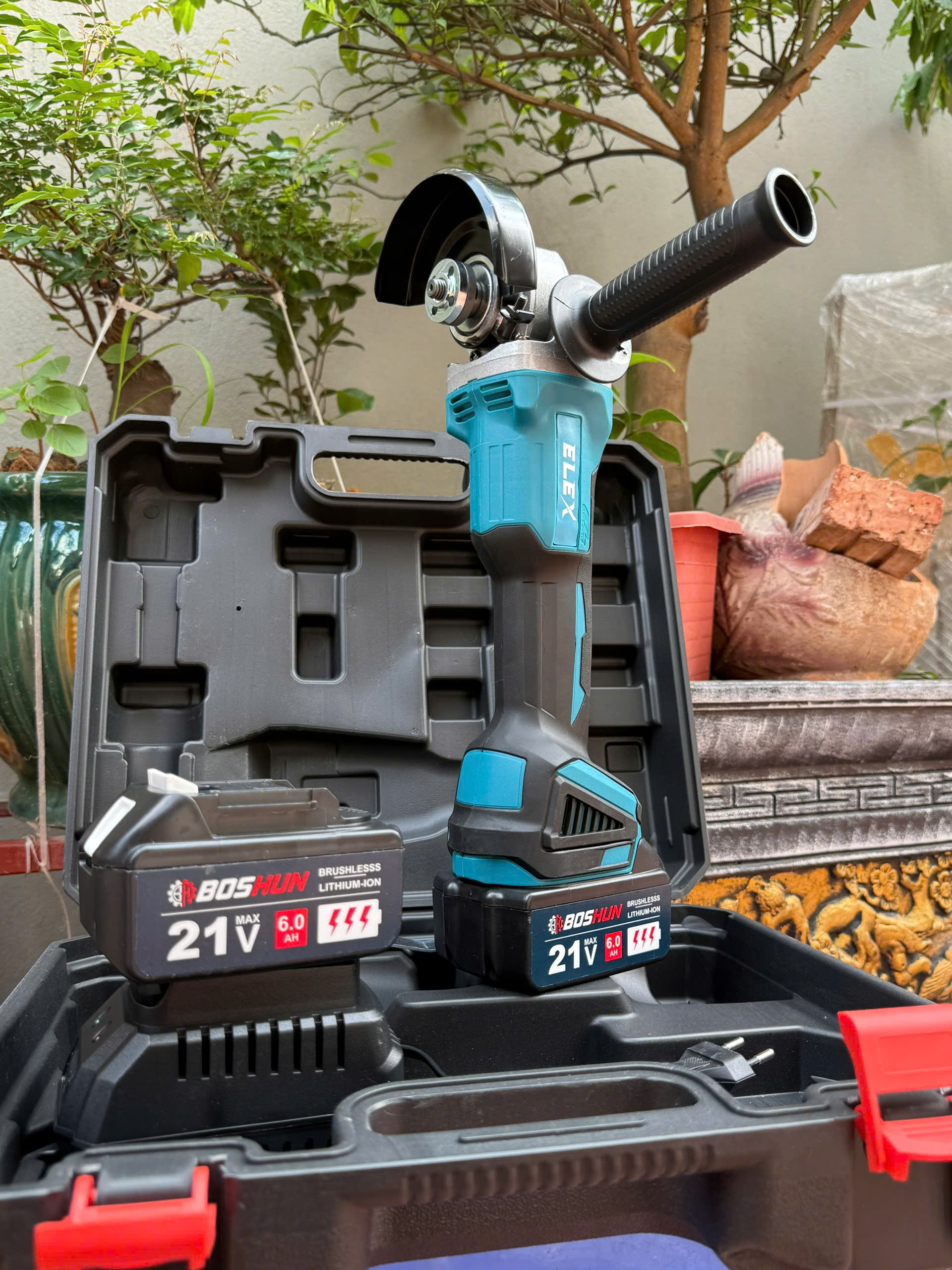 Máy mài pin ,Máy mài góc, Máy Cắt pin ELEX đùng Pin 10cell Boshun Động cơ không chổi than siêu bền, Có điều chỉnh tốc độ