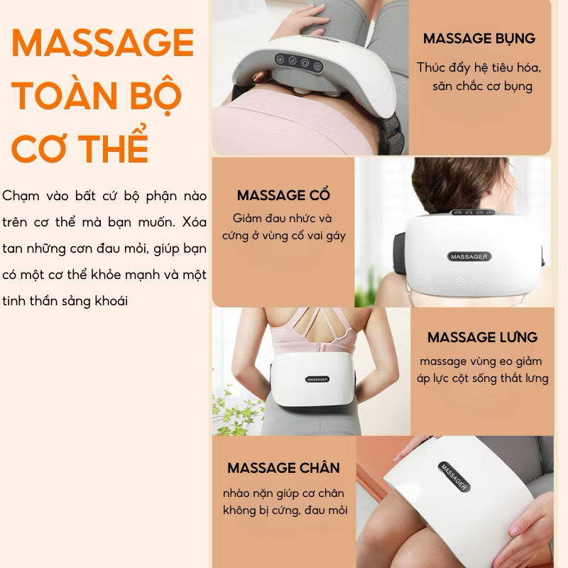 • Sản phẩm được sử dụng ở rất nhiều vị trí, vùng trên cơ thể như: bụng, lưng, vai, chân,... giúp hỗ trợ giảm đau mỏi, massage sâu kèm massage nhiệt mang lại cảm giác thoải mái, dễ chịu cho người dùng.