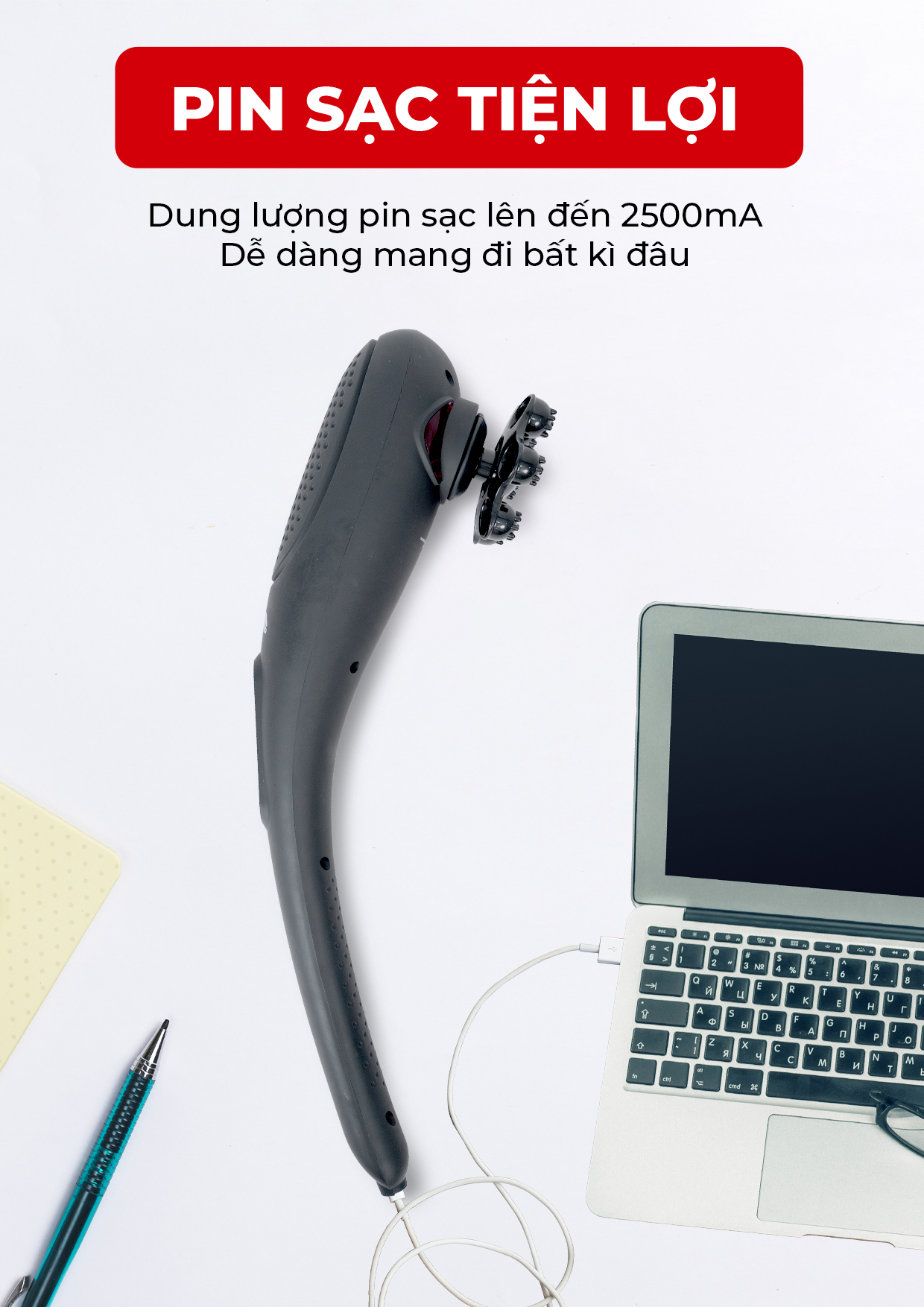 Massage cầm tay với thiết kế 8 bi xoay độc đáo mô phỏng các thao tác của nghệ nhân massage Tùy chỉnh cường độ Thiết kế cầm tay dễ dàng và thoải mái Sử dụng