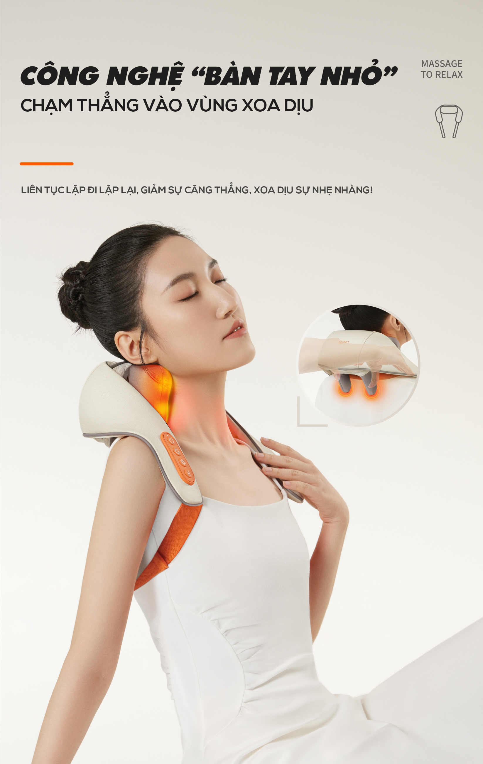 Massage nhẹ nhàng, thư giãn các vùng cơ chịu nhiều áp lực Thiết kế di động, lý tưởng để mang đi du lịch Có thể điều chỉnh tiện lợi với bảng điều khiển tích hợp