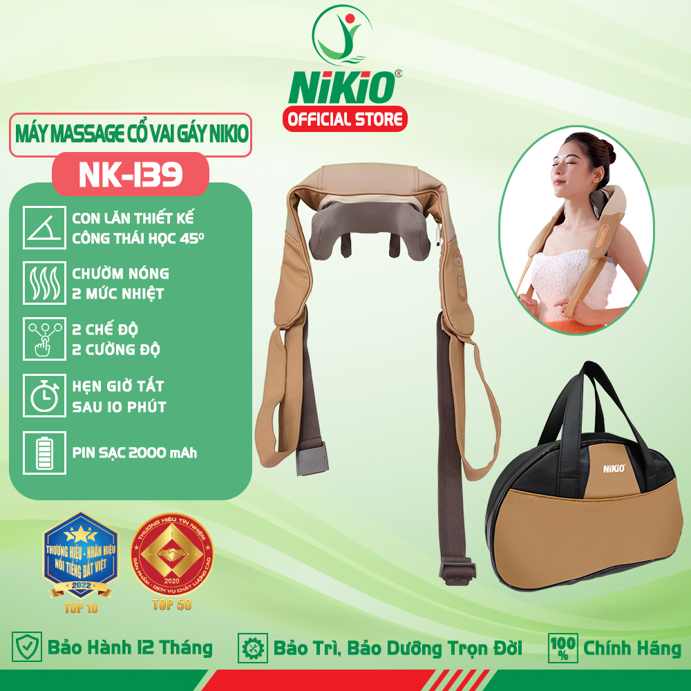 ✨Máy massage cổ vai gáy Nikio NK-139 - Pin sạc, tặng túi xách, nhiệt nóng, động cơ không chổi than êm ái bền bỉ