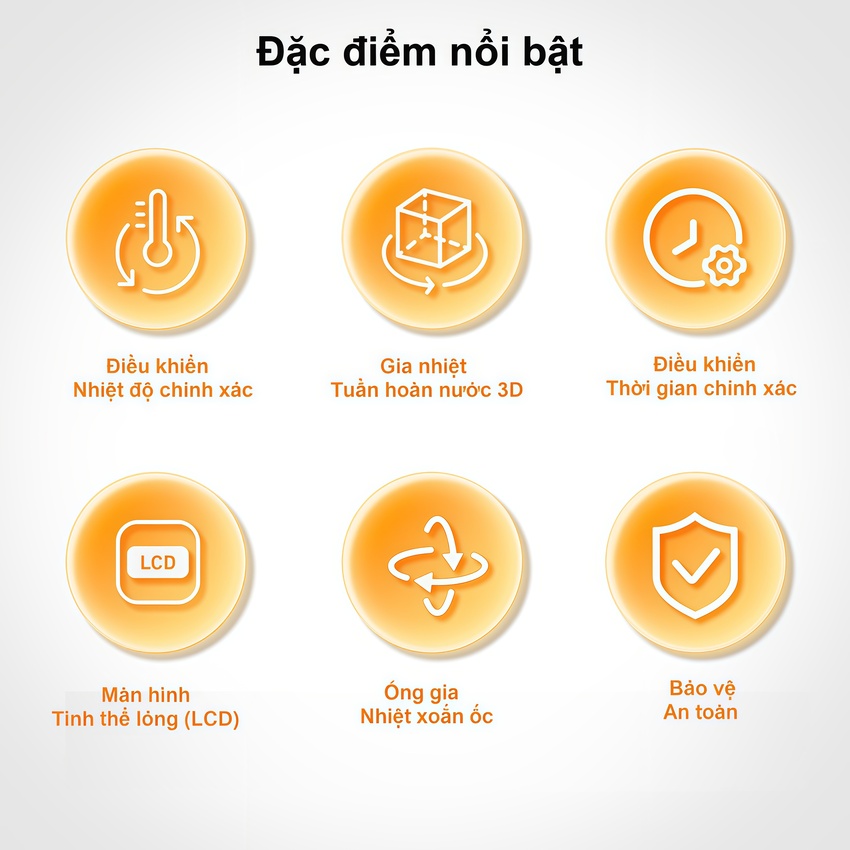 - Công suất cao 1200 watt để đun nước siêu nhanh. Tốc độ dòng chảy là 10 Lít / phút. Công nghệ làm món tuần hoàn 3D