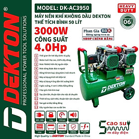 1 THÔNG SỐ KỸ THUẬT. Thương hiệu : Dekton Model : DK-AC3950PLUS Sản xuất : Trung Quốc Điện áp : 220V AC - 50Hz Công suất : 3000W - 4.0Hp Thể tích bình chứa :