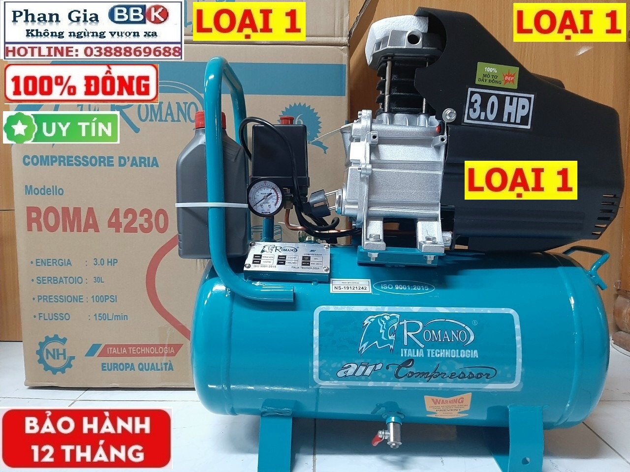 - MÁY NÉN KHÍ CÓ DẦU 30L ROMANO = 1899K