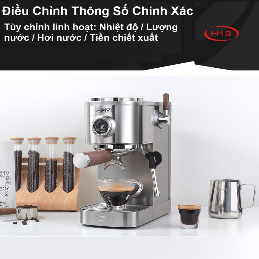 ✨Máy pha cà phê Cappuccino, Ristretto, Espresso, Latte chuyên nghiệp thương hiệu Mỹ cao cấp HiBREW H13 - Hàng nhập khẩu