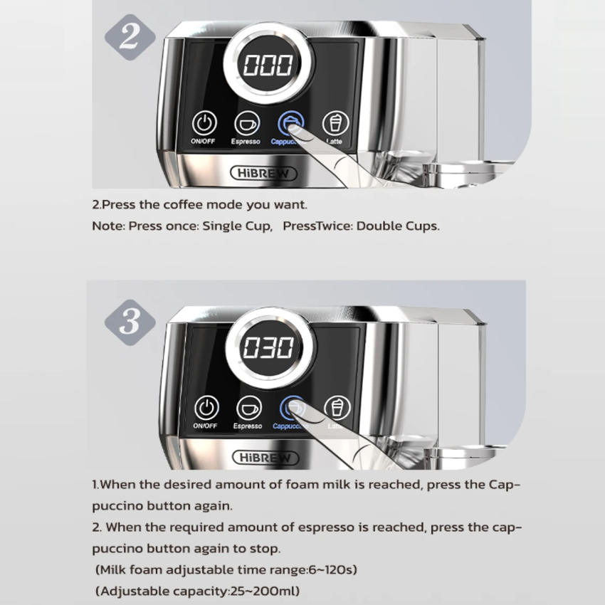 Máy pha cà phê bán tự động Espresso, Cappuccino, Latte thương hiệu HiBREW H10B cao cấp - Hàng Chính Hãng Tiếp nối thành công phiên bản Máy pha cà phê espresso bán tự động HiBREW