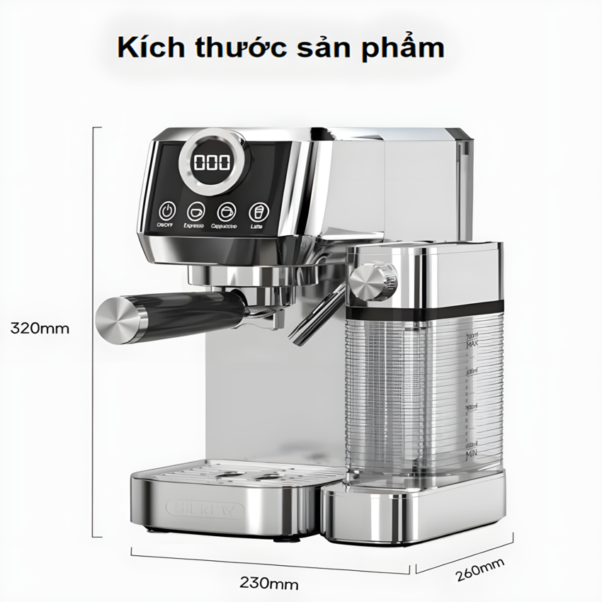 Máy pha cà phê Espresso bán tự động 3 trong 1 tự động pha Espresso, Latte, Cappuccino HiBREW H13A