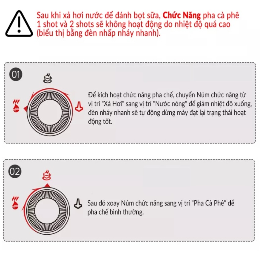 - Chức năng pha cà phê: Cappuccino, Espresso, Latte