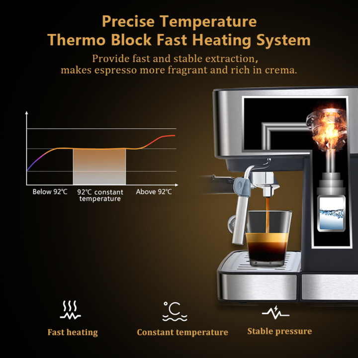 Bơm áp suất 20-bar của Ý: Áp suất hoàn hảo để chiết xuất hương vị, dầu và các thành phần hòa tan khác của cà phê, tạo nên những tách cà phê chất lượng với hương