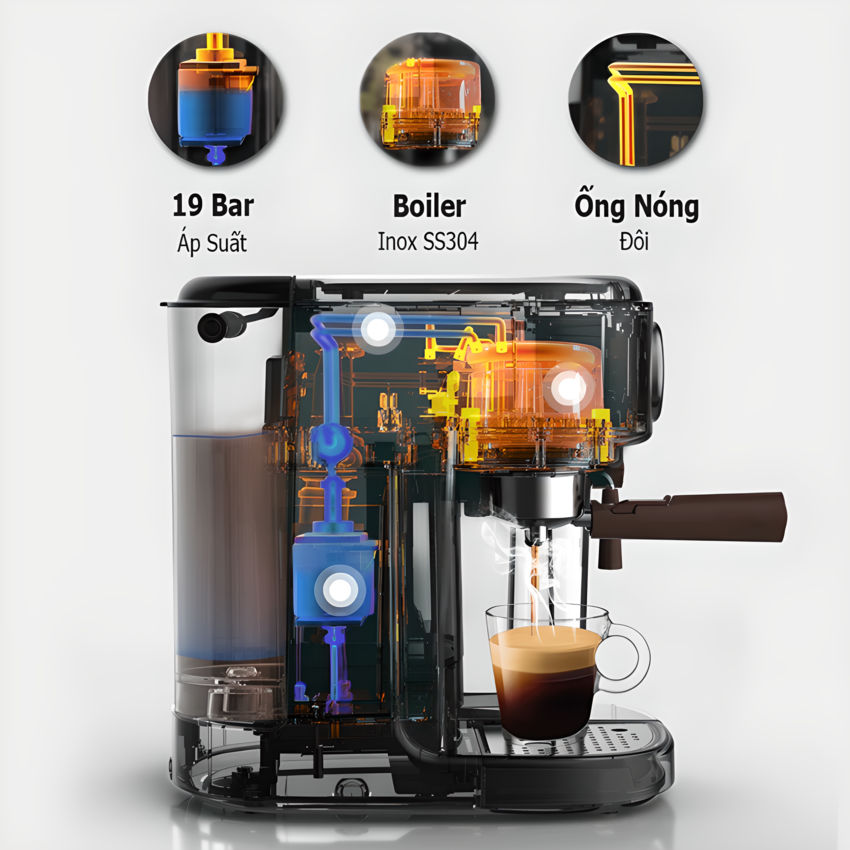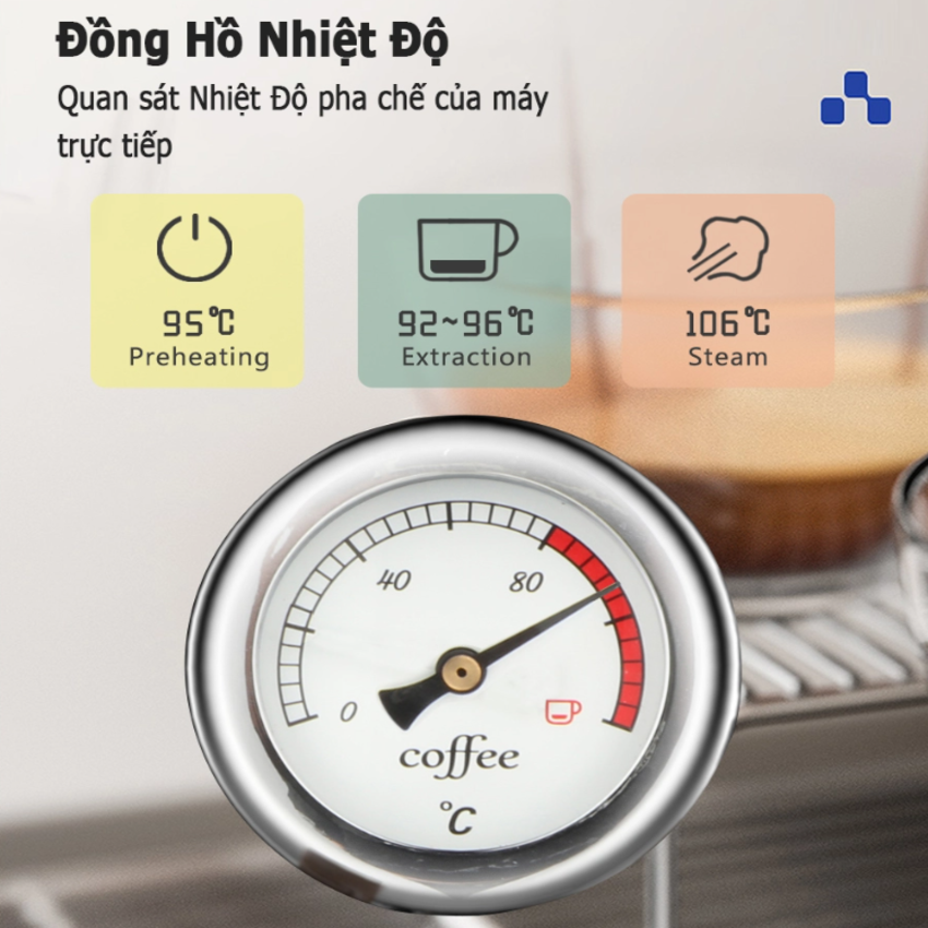- Pha cà phê espresso, tạo bọt sữa và đồng hồ do nhiệt độ 3 trong 1
