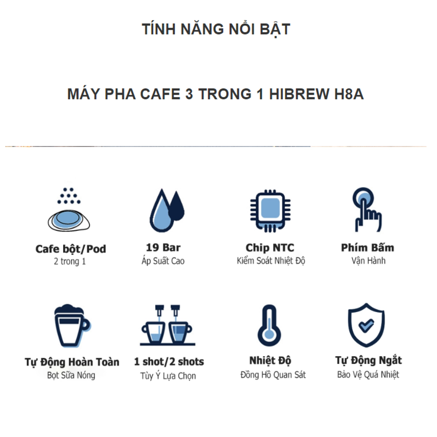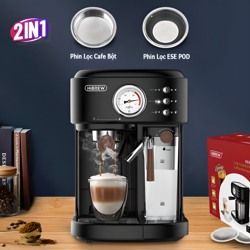 Mua tại TiktokMáy pha cà phê Espresso chuyên nghiệp thương hiệu Mỹ HiBREW cao cấp H8A - Hàng Nhập Khẩu Máy pha cà phê Espresso chuyên nghiệp 3 trong 1 HiBREW H8A là một thế hệ mới trong thiết kế Máy pha cafe Espresso - Cappuccino - Latte. Sự lựa chọn thông minh cho những ai yêu thích những cốc cafe Cappuccino hay Latte chuẩn Ý ngay tại nhà hay văn phòng Ưu điểm nổi bật