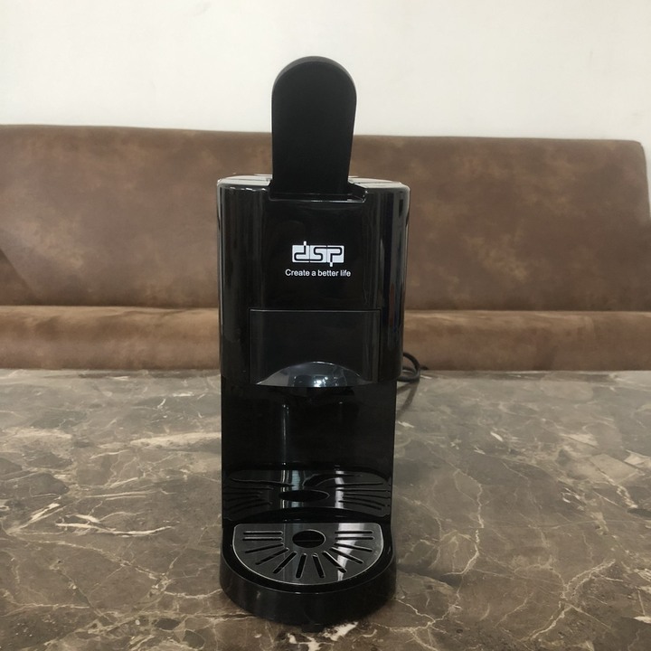 - Máy pha cà phê DSP KA3046 là một trong những loại máy pha cà phê 3 trong 1 mới nhất trên thị trường, nguyên liệu sử dụng là cà phê bột hay một viên nén hình nón, có chứa cà phê trong đó.