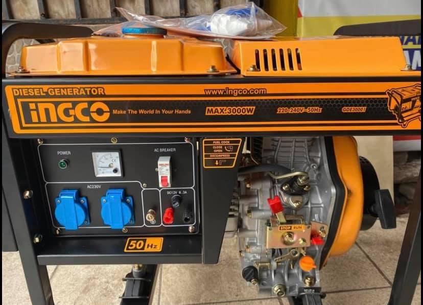Máy phát điện INGCO GDE30001 dùng nhiên liệu dầu có công suất tối đa là 3.0kVA, đây là dòng sản phẩm mới được sản xuất bởi dây chuyền công nghệ hiện đại hàng đầu của