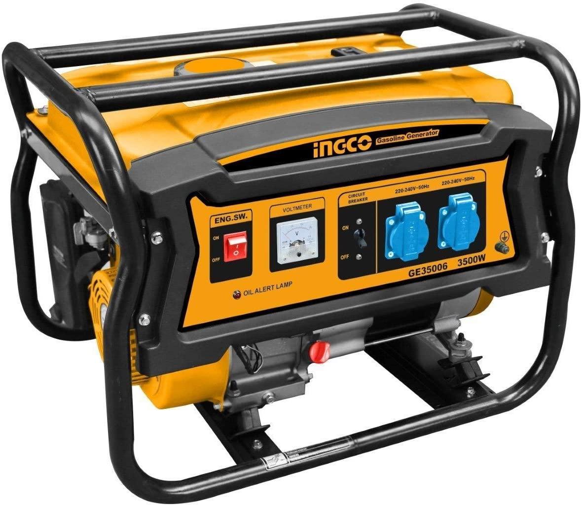 Máy phát điện INGCO GE35006 dùng nhiên liệu xăng có công suất tối đa là 3.5kVA, đây là dòng sản phẩm mới được sản xuất bởi dây chuyền công nghệ hiện đại hàng đầu của