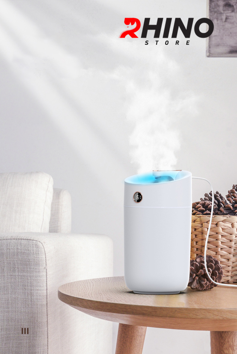 ✨Máy phun sương tạo ẩm cỡ lớn Rhino H801 3000ml, 2 lõi phun, tích hợp đèn 7 màu, dung tích lớn cho không gian rộng - Hàng chính hãng