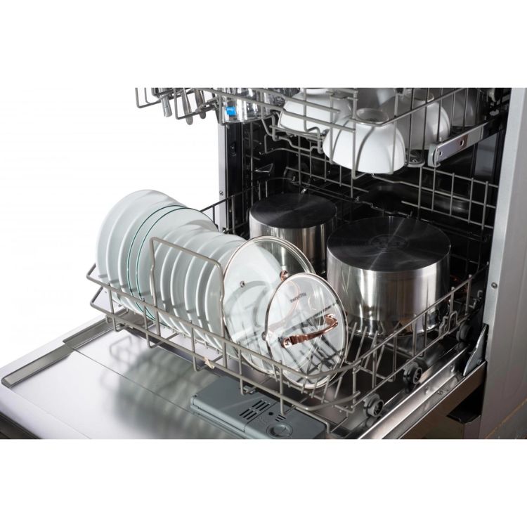 Hơn nữa, máy rửa bát có thiết kế buồng máy bằng thép không gỉ, chịu được nhiệt độ cao và không tạo ra chất độc hại trong quá trình máy rửa bát hoạt động. Với 3 tầng giá xếp đồ, tối ưu hóa việc sử dụng không gian một cách tiện lợi. Điều này cho phép bạn xếp được nhiều bát đĩa hơn, đồng thời vẫn đảm bảo chất lượng và hiệu quả trong quá trình rửa. Các tầng giá xếp đồ linh hoạt có thể điều chỉnh khoảng cách ở tầng giữa khoảng 5cm, giúp tạo thêm không gian phù hợp với nhiều dụng cụ nấu ăn như nồi cao, đĩa rộng, hoặc chảo sâu, kích thước quá khổ… Điều này làm cho máy rửa bát trở nên đa năng và thích hợp cho nhiều loại bát đĩa và dụng cụ nấu ăn khác nhau, mang lại sự tiện lợi cho việc sử dụng hàng ngày.