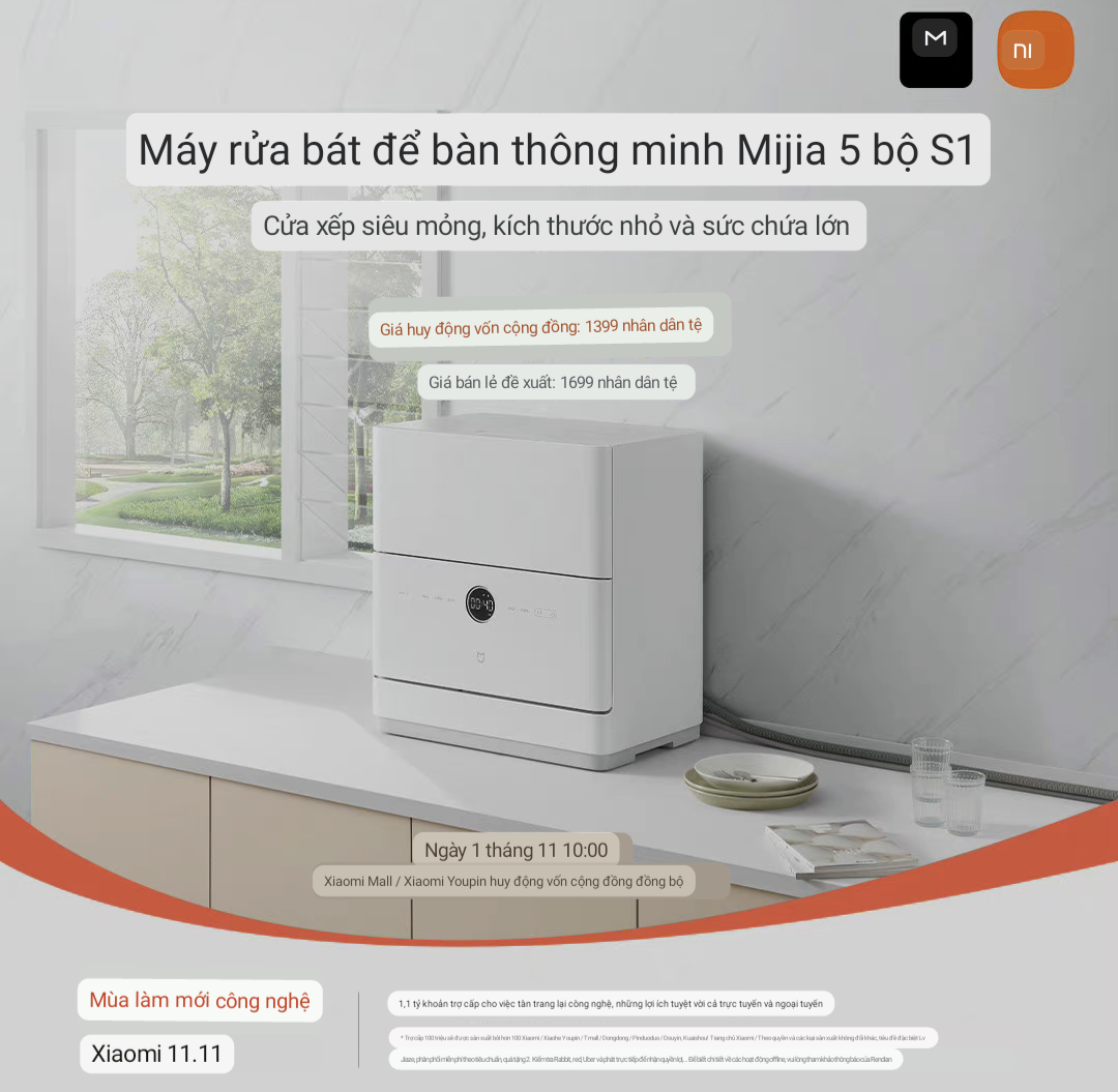Sau thanh công của máy rửa bát xiaomi mijia S1 15 bộ , Xiaomi đã ra mắt Máy rửa bát thông minh Mijia S1 12 bộ. Cánh cửa thông minh có thể tự động đóng mở; cửa sẽ mở