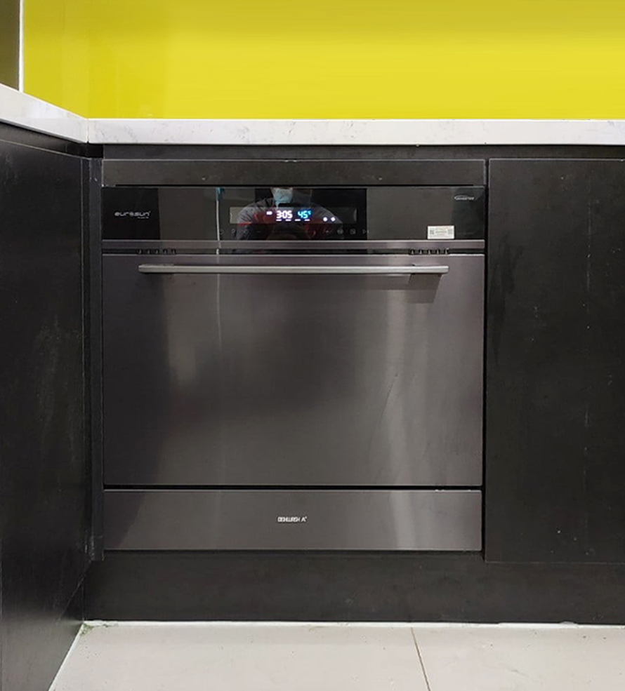 - Máy rửa bát Eurosun SMS58EU09BT được thiết kế lắp đặt âm tủ và độc lập phù hợp với nhiều không gian bếp khác nhau. Gam màu đen xám chủ đạo tạo nên vẻ bề ngoài sang trọng, hiện đại. Với chất liệu inox SUS304 chống bám bẩn. Sản phẩm mang đến cho căn bếp của bạn sự hiện đại và sang trọng.