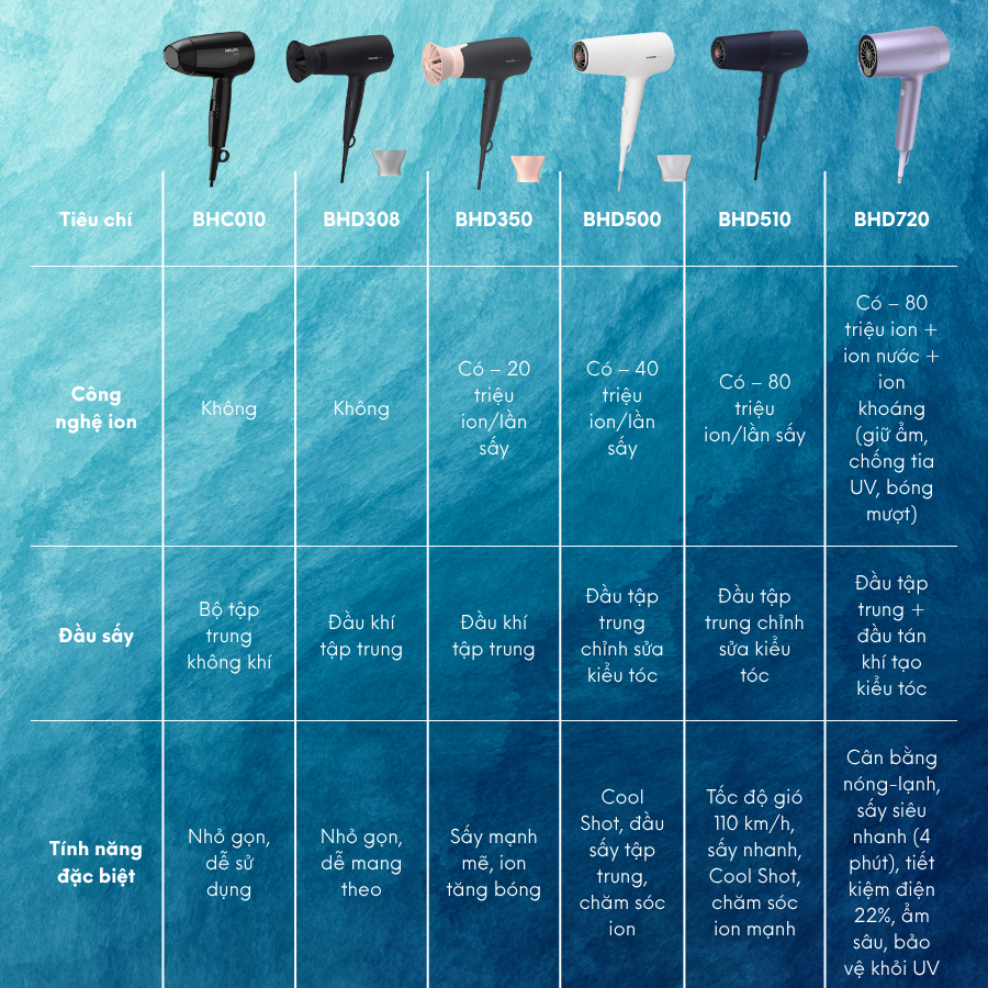Model: BHC010/10 Nhà sản xuất: Philips Xuất xứ: Trung Quốc Thời gian bảo hành: 24 Tháng Địa điểm bảo hành: Nguyễn Kim Loại máy: Sấy tóc Công suất: 1200W Chế độ sấy: 2 chế độ