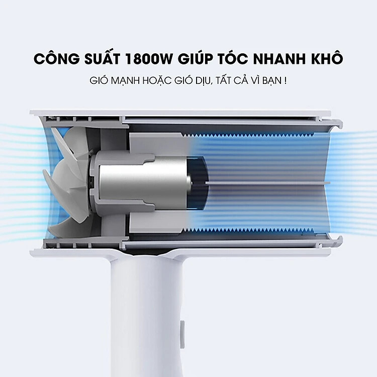 Động cơ không chổi than tốc độ cao 110.000 rpm, tốc độ gió 65m/s, làm khô tóc ngắn chỉ trong 40 giây Cảm biến kiểm soát nhiệt thông minh NTC, kiểm soát nhiệt độ 100