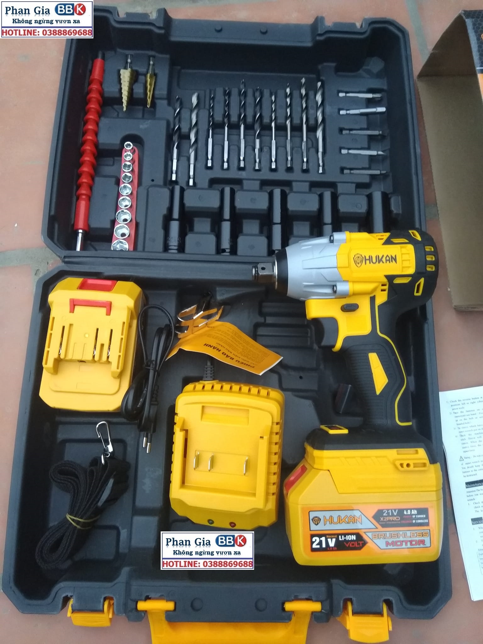 Máy Khoan Pin Hukan 16.8V. Đầu Cặp 10MM - Sử dụng động cơ không chổi than ( Brushless) Giúp máy hoạt động tiết kiệm pin và mạnh mẽ dù máy rất nhỏ gọn - Vỏ