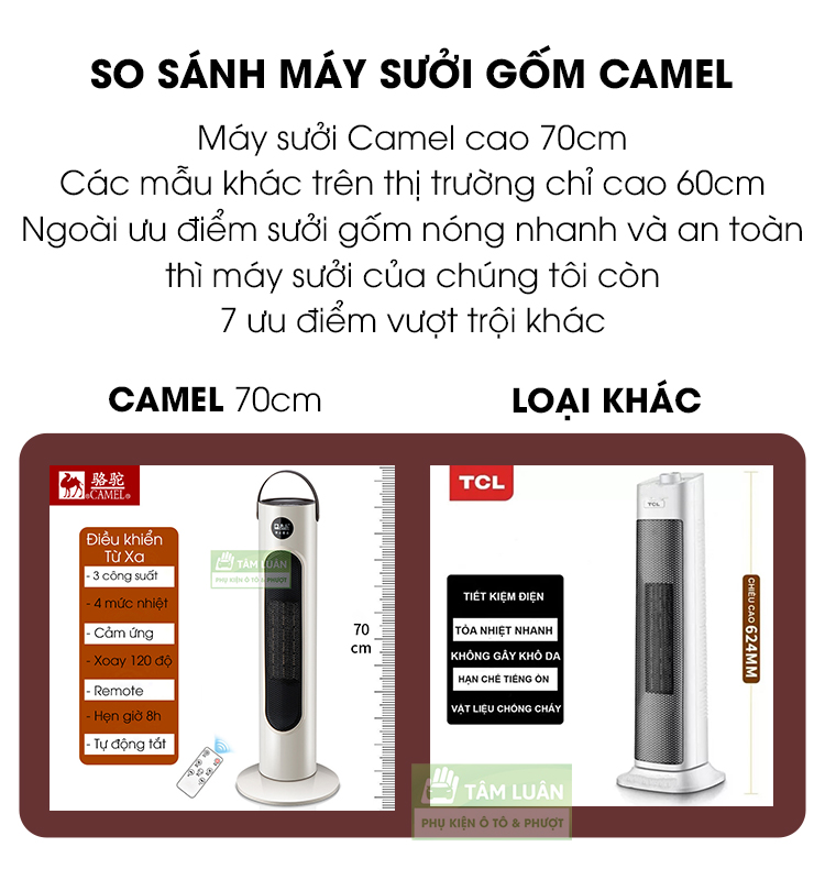 Mua tại TiktokMáy sưởi gốm Camel là sản phẩm thuộc top đầu thương hiệu về dòng sản phẩm máy sưởi tại thị trường TQ. Đây là sản phẩm nội địa TQ được chúng tôi phân phối chính hãng, bả.o hà.nh trực tiếp bởi Tâm Luân
