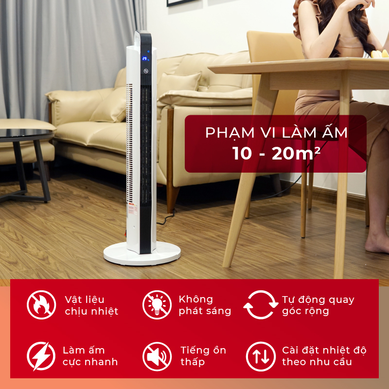 Tỏa nhiệt đều, không gây khô da - Máy sưởi sử dụng bóng đèn được làm bằng chất liệu halogen, giúp tản nhiệt nhanh, độ bền cao, không chói mắt, không đốt cháy oxy -