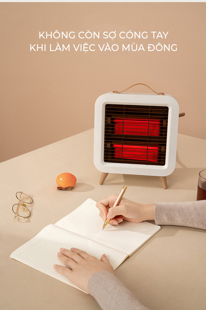 Thiết kế nhỏ gọn, tiện dụng Sưởi ấm nhanh, không gây tiếng ồn 3 mức phát nhiệt Có tính năng quay đảo hướng phát nhiệt, phạm vi phát nhiệt rộng Lưới tản nhiệt thiết kế