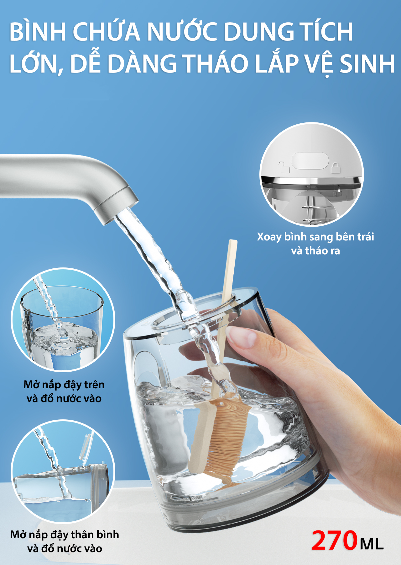 - Dung tích bình chứa: 270ml