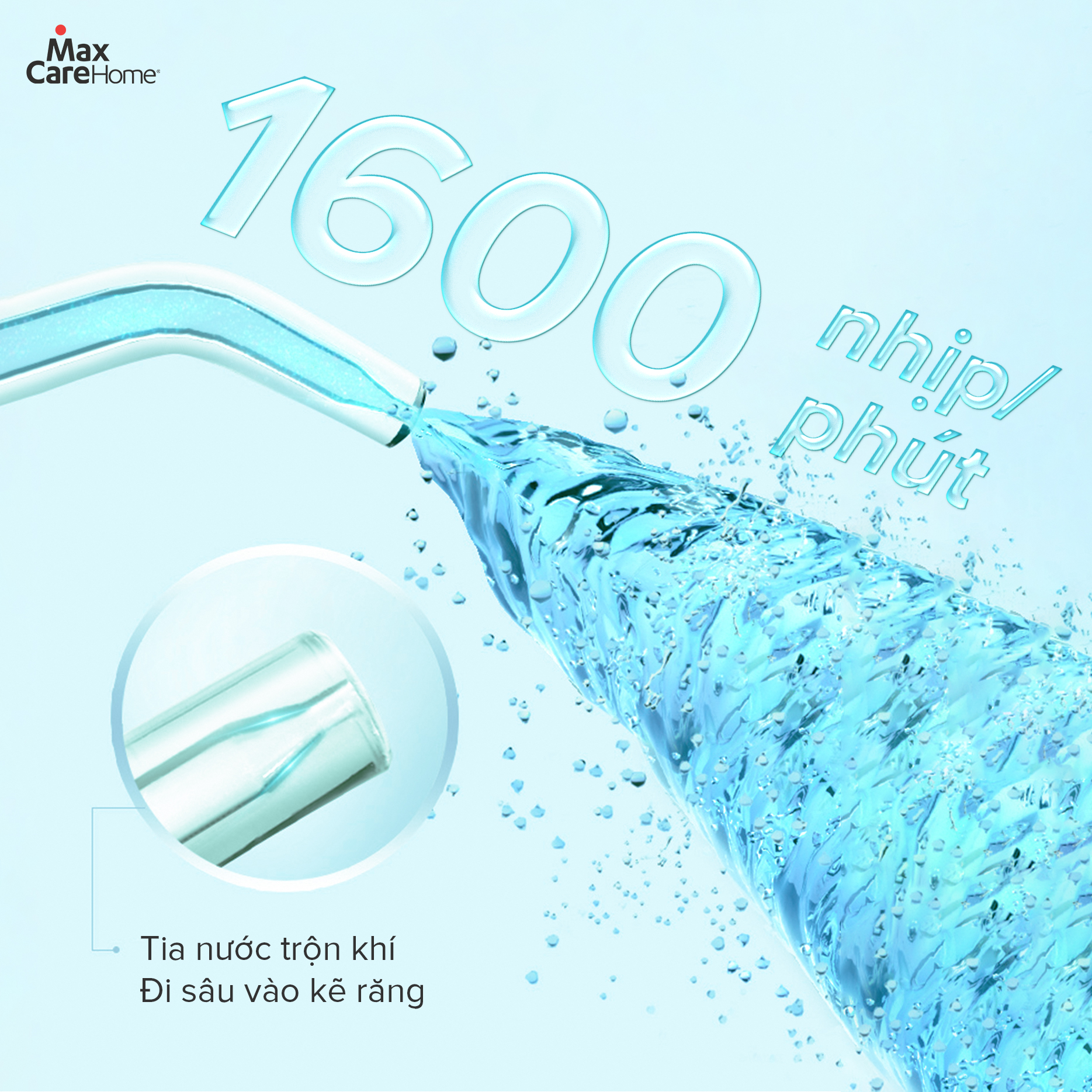 TIA NƯỚC SIÊU NHỎ XỊT SẠCH KẼ RĂNG NHANH CHÓNG Đường kính đầu tăm máy tăm nước Maxcare M1Pro siêu nhỏ, chỉ 0.6mm tạo ra các tia nước mạnh và mảnh, đầu phun xoay 360° làm