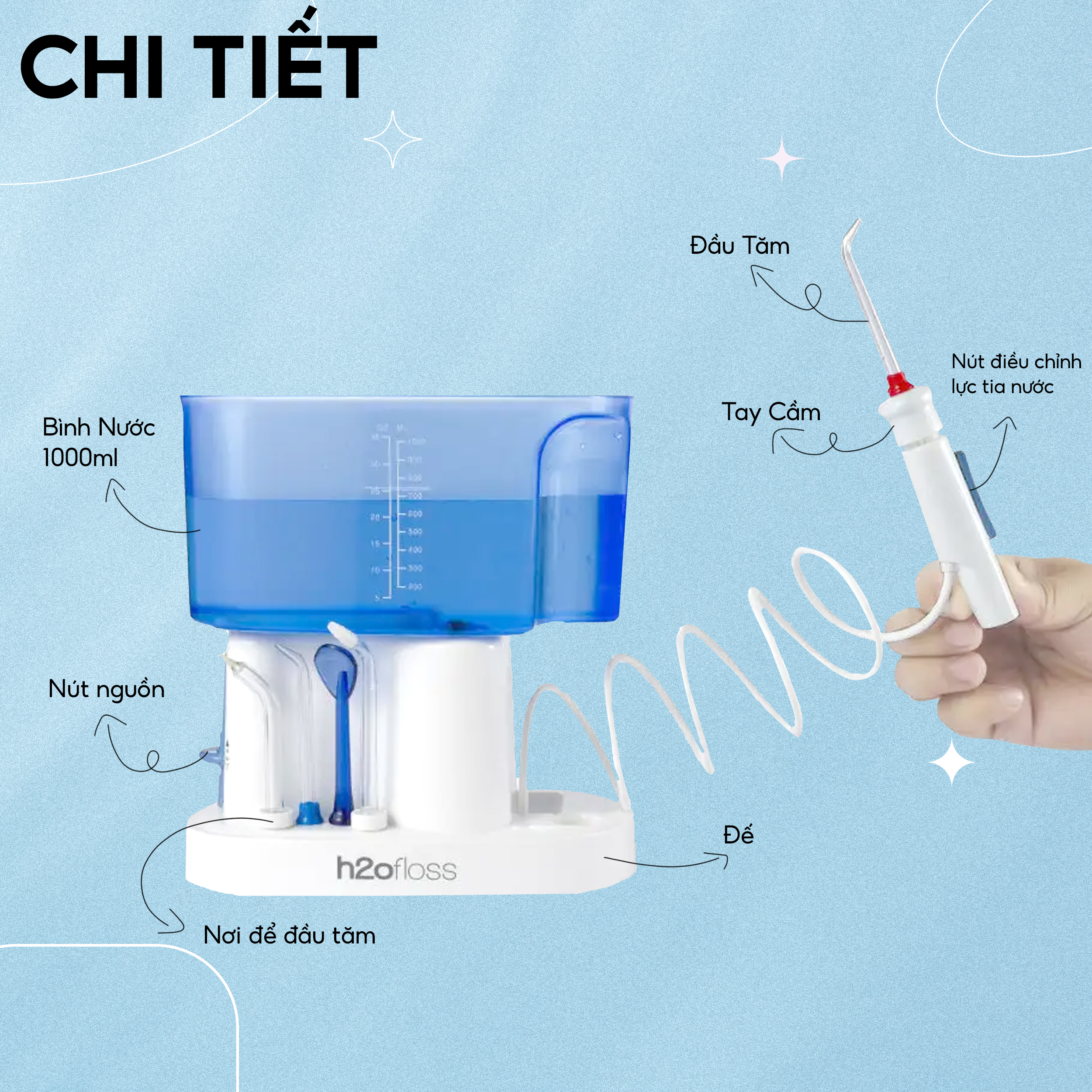 Tăm Nước H2ofloss HF7 Classic- Mẫu tăm nước cho cả gia đình - H2ofloss sáng lập bởi cựu kỹ sư Waterpik - Đạt tiêu chuẩn ISO 13485 về thiết bị y tế và ISO 9001