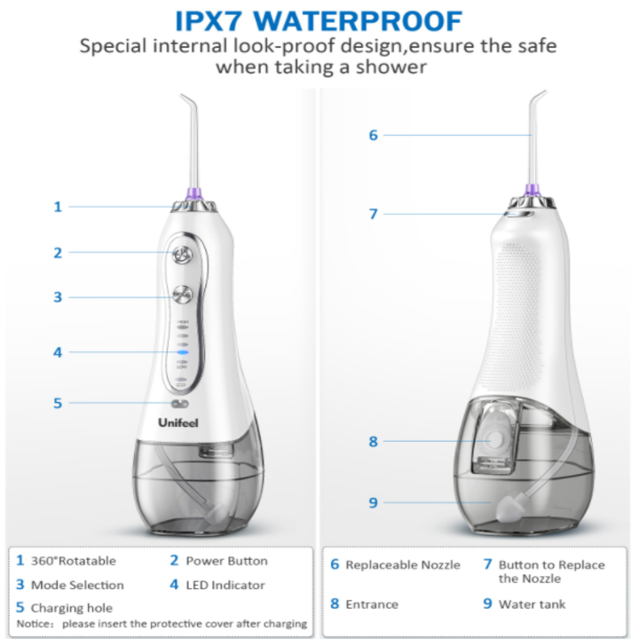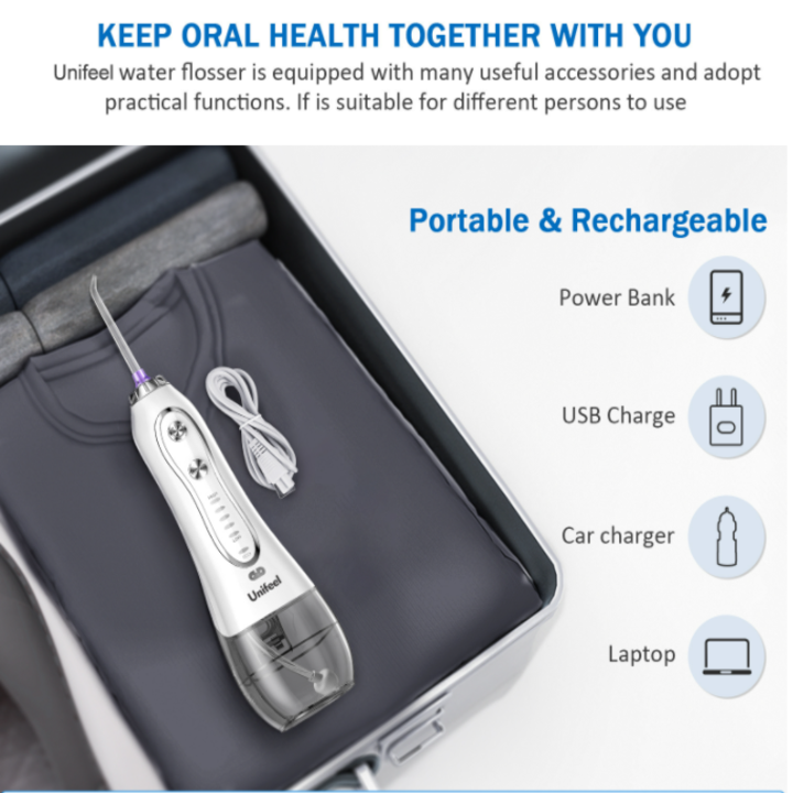 Máy tăm nước cầm tay nhãn hiệu Unifeel HF-6 Có 5 chế độ hoạt động - HÀNG NHẬP KHẨU Máy tăm nước Unifeel HF-6 (máy xỉa răng bằng nước) là thiết bị sử dụng áp lực tia nước làm sạch khoang miệng. Áp lực tia nước mạnh làm sạch sâu và nhanh chóng những nơi mà chỉ nha khoa hay bàn chải kẽ răng không thể chạm tới giúp tiết kiệm thời gian vệ sinh răng miệng nhưng vẫn đạt hiệu quả tối đa.