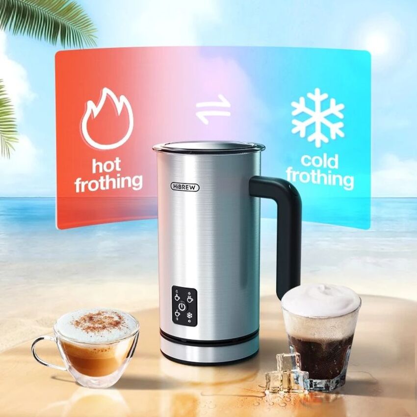 - Máy tạo bọt sữa Nóng và Lạnh 4 trong 1 HiBREW M3A là một sản phẩm được thiết kế có thể tạo bọt sữa cho đồ uống sữa nóng và lạnh. Máy sở hữu tới 4 chức năng bao gồm: tạo bọt sữa nóng cho latte macchiato, tạo bọt sữa nóng cho cappuccino thêm bọt, tạo bọt sữa lạnh cho cà phê đá hoặc frappé, tạo sữa nóng như cacao, chocolate, latte… Với tính năng đa dạng này, bạn hoàn toàn có thể sử dụng máy để tạo ra những loại bọt sữa yêu thích cho gia đình và bạn bè. Thiết kế tinh tế, nổi bật
