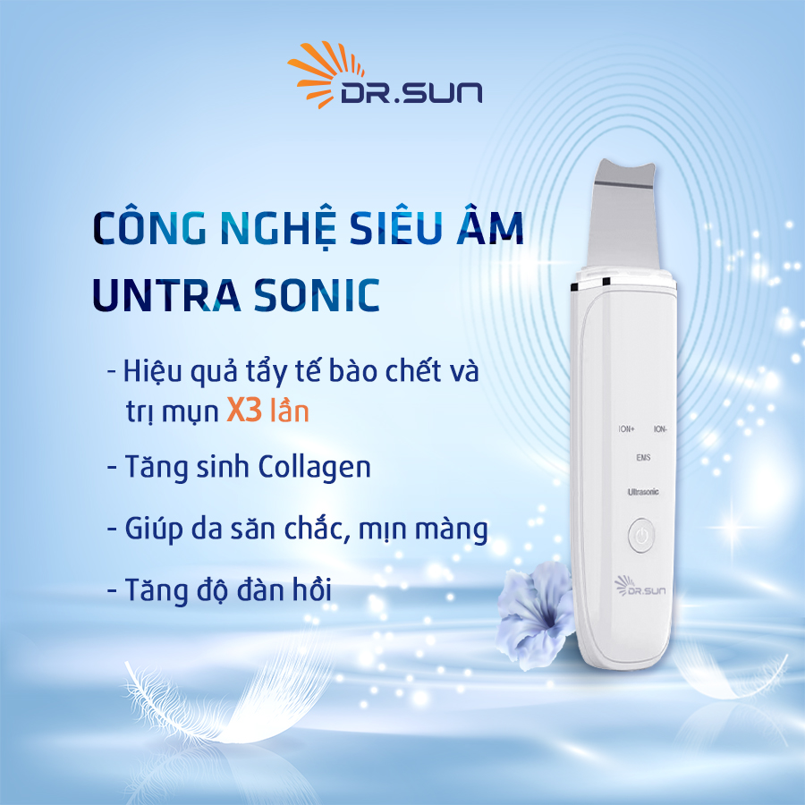 - Ưu điểm vượt trội: Sóng âm Ultrasonic giúp loại bỏ bụi bẩn và tẩy sạch tế bào trên da một cách hiệu quả, không bào mòn và làm mỏng da như các sản phẩm tẩy tế bào ch.ế hoá học khác Ion dương làm sạch da và thanh lọc sâu lỗ chân lông. Ion âm đưa dưỡng chất vào sâu trong lớp biểu bì giúp trẻ hóa làn da Dòng điện EMS kết hợp với kem mát-xa nâng cơ săn chắc để tăng độ đàn hồi cho da. Ánh sáng Photon: làm dịu da, hỗ trợ làm lành vết thươngg, điều tr.ị mụn và thư giãn làn da (ánh sáng xanh). Kích thích sản sinh collagen, tăng cường lưu thông máu, tái tạo da (ánh sáng đỏ).