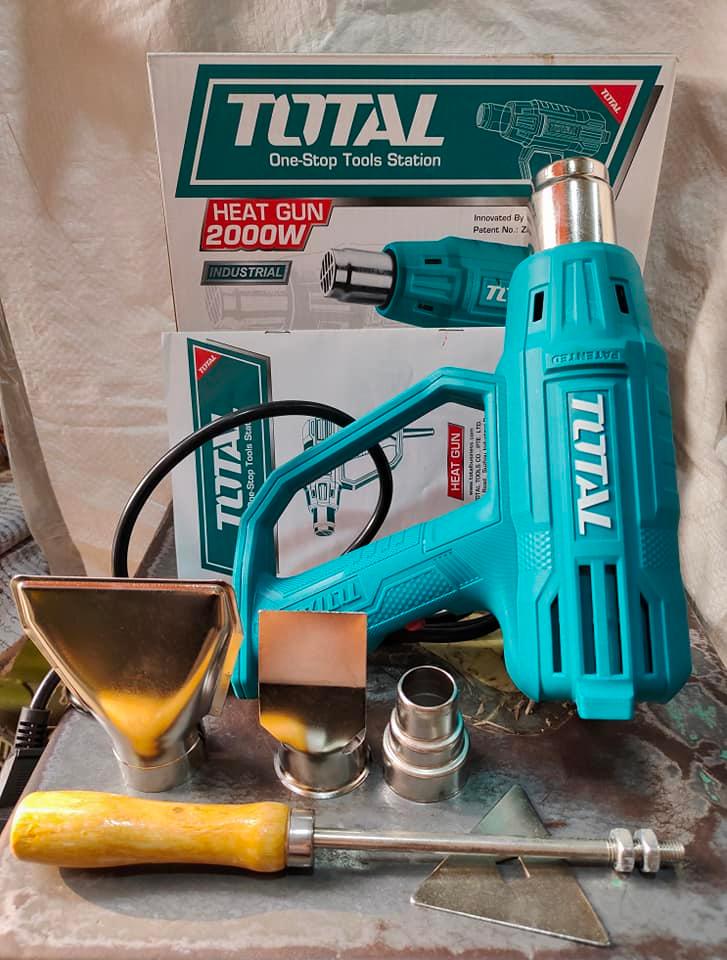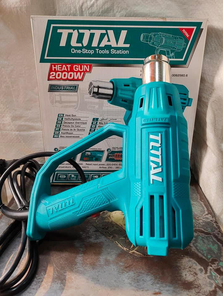 Máy khò nhiệt Total công suất 2000W nhiệt độ 550, kèm đầu thổi Máy khò màng co, khò hàn chính hãng