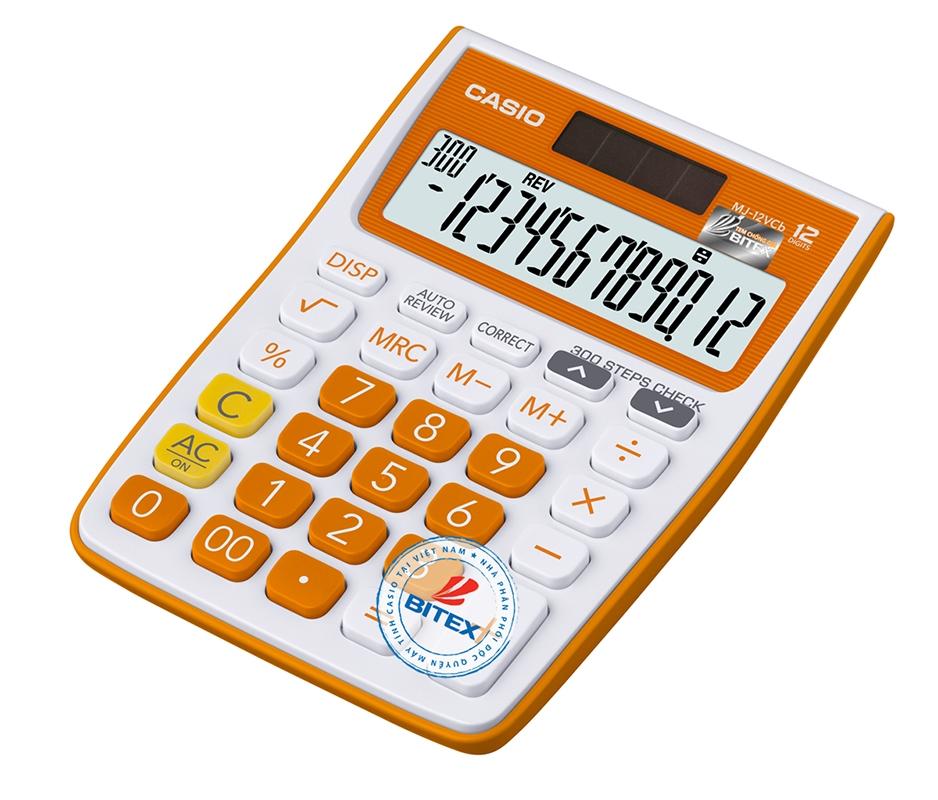 Máy Tính Casio MJ 12VCB - 12 chữ số Phần trăm thông thường: Các tính toán phần trăm thông thường. Nguồn hai chiều (Mặt trời + Pin): Chế độ sử dụng năng lượng mặt trời