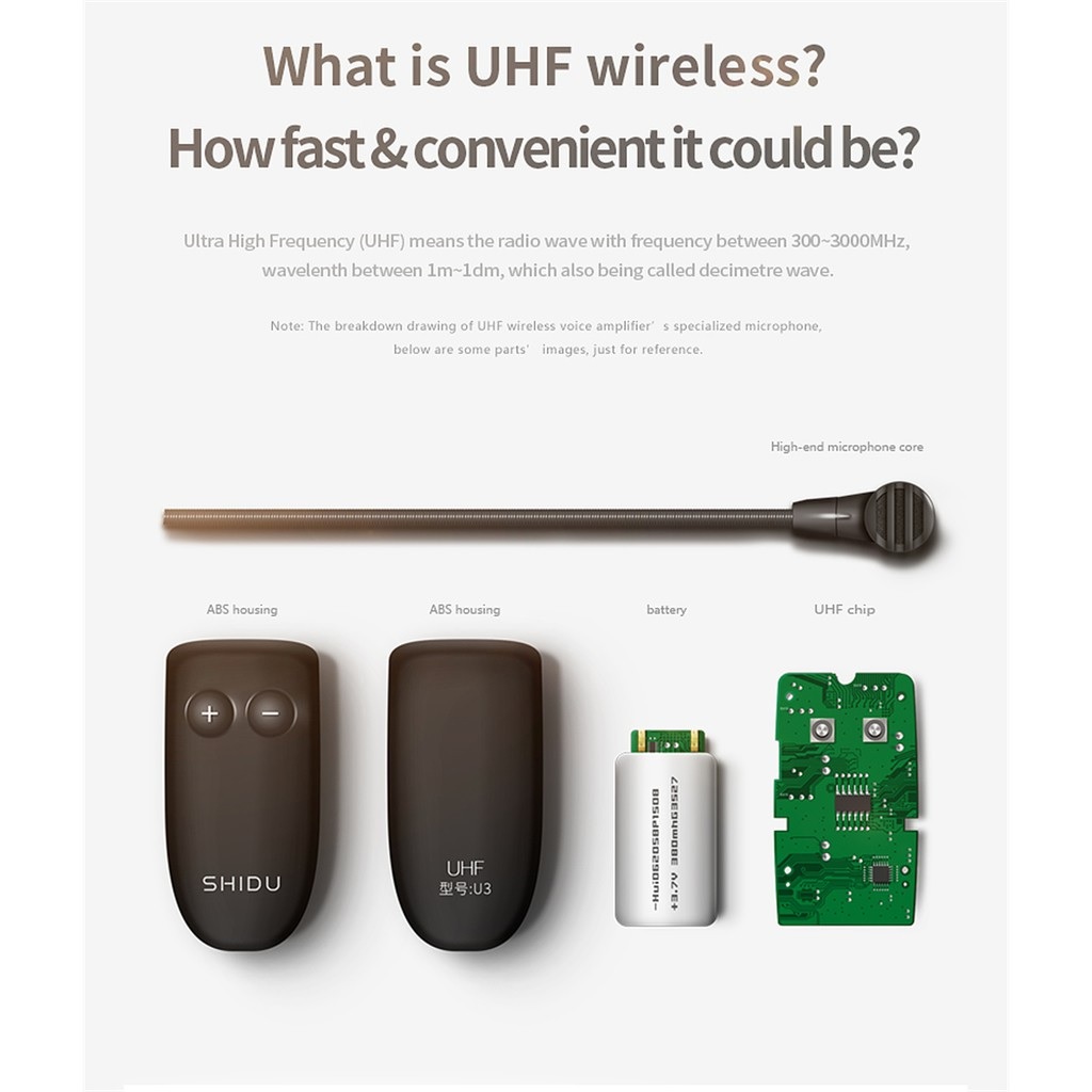 Máy trợ giảng không dây Shidu SD-S611 bản 2021 với công nghệ sóng UHF mạnh mẽ, công suất loa trợ giảng 10W thích hợp cho giáo viên, hướng dẫn viên sử dụng trong dạy học