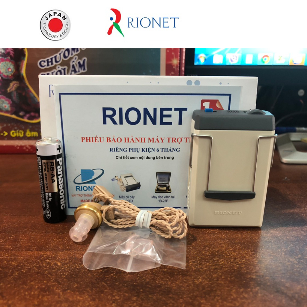 - Thời gian sử dụng máy trợ thính trung bình 170 giờ. Máy trợ thính dây đeo Rionet HA-20Dx Giới thiệu máy trợ thính dây đeo Rionet HA-20Dx, cho người khiếm thính Máy trợ thính dây đeo Rionet HA-20Dx giải pháp tuyệt vời dành cho người khiếm thính Không có máy trợ thính nào có thể giúp người khiếm thính trở về trạng thái nghe tự nhiên như người bình thường, mà sản phẩm chỉ hỗ trợ khuếch đại âm thanh giúp cải thiện nghe tốt hơn. Nếu trước đây, những dòng máy trợ thính gài tai thông thường không đủ đáp ứng nhu cầu của bạn thì máy trợ thính dây đeo Rionet HA-20Dx sẽ giúp bạn giải quyết được vấn đề. Kích thước máy trợ thính dây đeo Rionet HA-20Dx Độ khuếch đại âm lớn dây đeo Rionet Rionet HA-20Dx với độ khuếch đại âm lớn cao nhất lên đến 61dB, chuyên dùng cho người khiếm thính nặng như người già lãng tai, người khiếm thính bẩm sinh. Máy có 3 chế độ nghe: nghe ở chế độ có bộ lọc tạp âm, chặn tiếng ồn, giảm tiếng ồn, cho âm thanh êm ái không bị chói tai. Núm điều chỉnh cường độ khuếch đại Thiết kế tiện lợi, dễ sử dụng Rionet HA-20DX là loại bỏ túi có dây, có độ bền cao, có bộ phận cài (kẹp) tránh bị rơi hay mất máy. Các nút tắt/bật, điều chỉnh âm lượng to dễ sử dụng, phù hợp với mọi đối tượng sử dụng. Khay chứa pin máy trợ thính dây đeo Rionet HA-20Dx Vị trí điều chỉnh Tone âm thanh Dung lượng pin lớn Rionet HA-20DX sử dụng một viên pin AA 1.5V dễ dàng thay thế và lắp đặt. Thời gian sử dụng pin của máy trợ thính trung bình khoảng 170 giờ (tùy vào cách sử dụng và từng loại pin). Bảng điều khiển máy trợ thính dây đeo Rionet HA-20Dx Cấu tạo máy trợ thính dây đeo Rionet HA-20Dx
